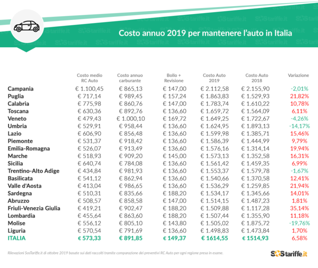 Infatti Secondo alVolante che ha ripreso una ricerca di SOStariffe la spesa media annuale per un auto è di 1614,55 €
